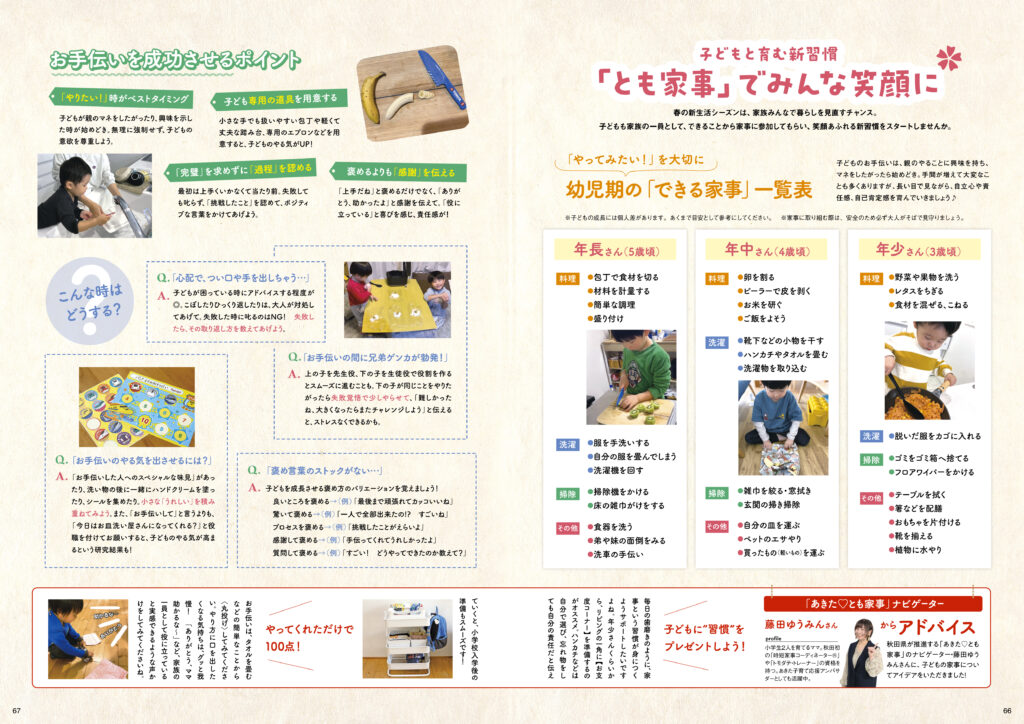 子どもと育む新習慣「とも家事」や朝と夜の習慣を見直す方法など、新年度のスタートにピッタリのファミリーに役立つ耳寄り情報が盛りだくさんの特集です。